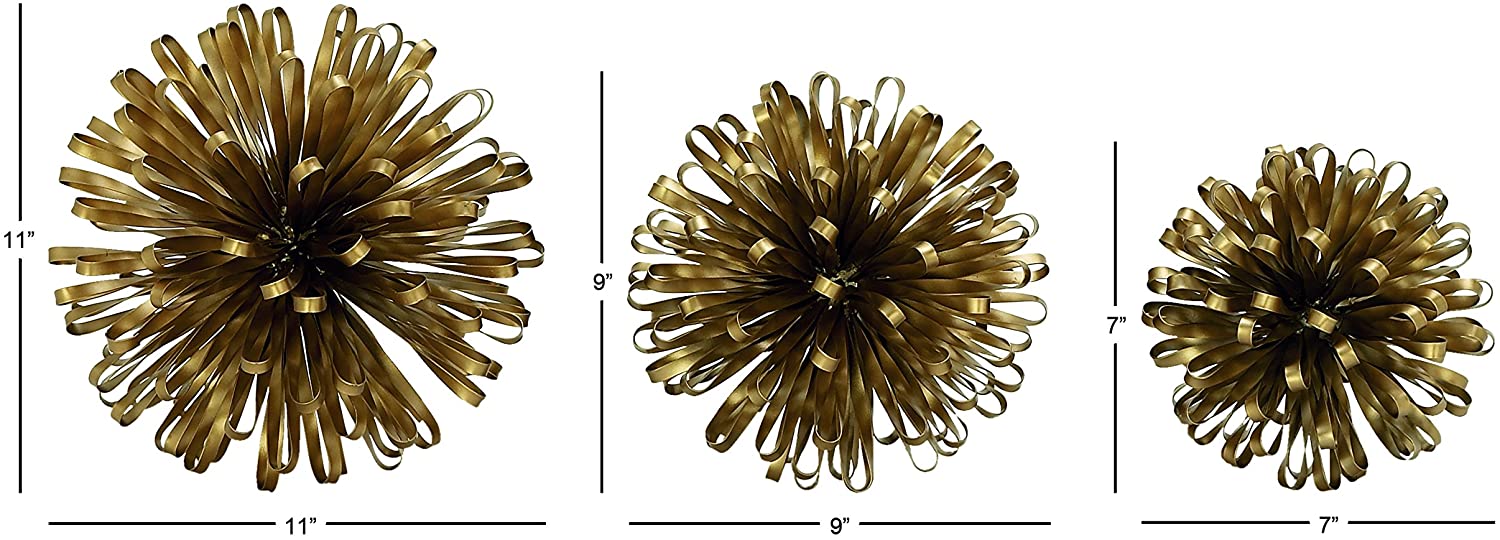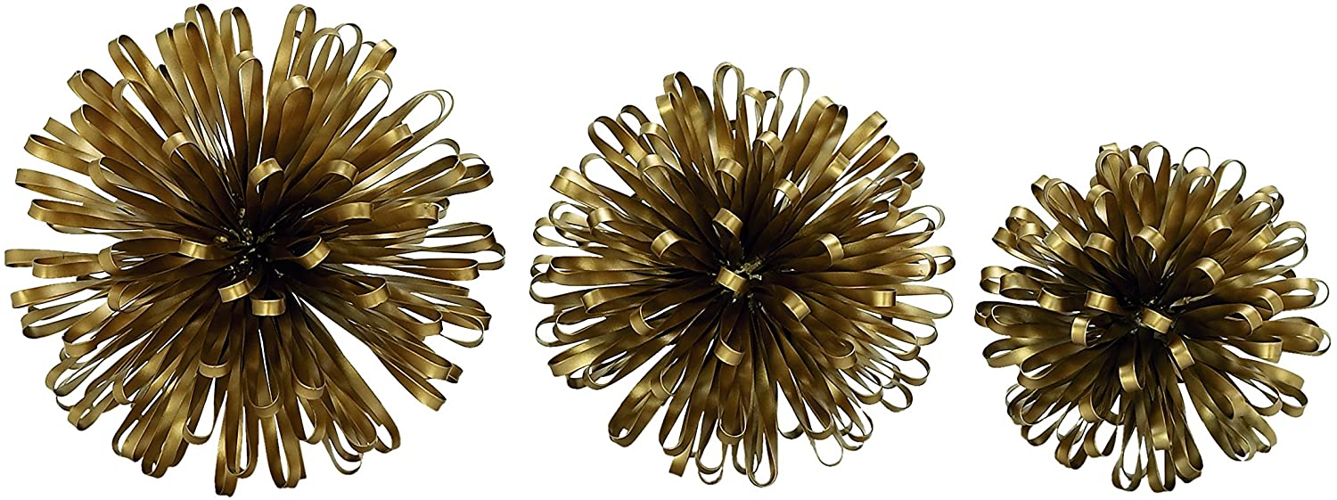 Grande – 11 pulg. De diámetro Mediano – 9 pulg. De diámetro Pequeño – 7 pulgadas de diámetro Un conjunto de 3 esculturas decorativas de orbes de banda de bucle de hierro Bandas en bucle largas con acabado dorado que forman bolas redondas
